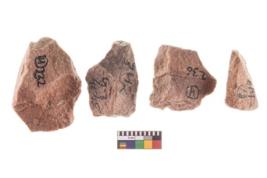 | Description / विवरण | Four worked utilised flakes. Many a times tapering and pointed at one end. |