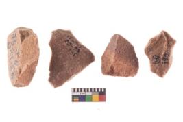 | Description / विवरण | Four worked utilised flakes. Many a times tapering and pointed at one end. |