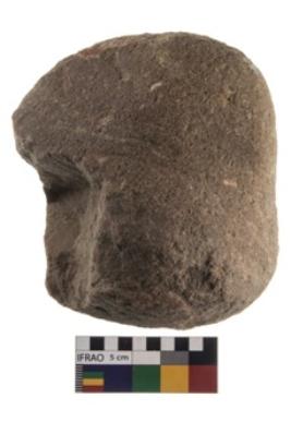 | Description / विवरण | A partially broken specimen of a oval shaped mueller stone with oval section. |
