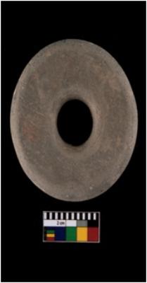 | Description / विवरण | A complete specimen of disc shaped black and red ware terracotta net sinker. It is wheel-made with well-levigated clay. The perforation widens near the edges and narrows inside. The top and bottom are coarse, but the sides have been worn smooth. It is having abrasion marks on its surface. It is light-weight. It is having rough surface, coarse, reddish in colour and well fired. |