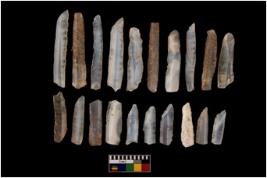 | Description / विवरण | There are n 20 microlithic blades of the material Chalcedony and Banded Agate. All the blades are in intact condition. Some of the blades are re-touched. |