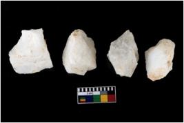 | Description / विवरण | There are n-4 of intact utilized flake cores made up of Quartz. Some of them have bulge of percussion and some are flat flakes. |