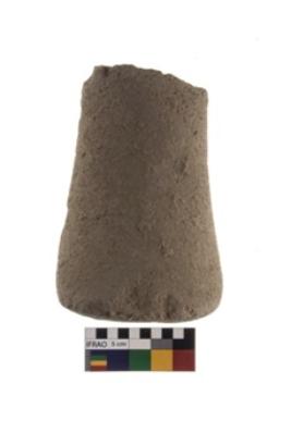 | Description / विवरण | A Partially broken specimen of a oval shaped pounder stone with battered surfaced and truncated end to hold the object. |