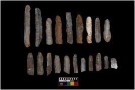 | Description / विवरण | There are 20 number of microlithic blades out of which 19 are of material Chalcedony and single specimen of chert. All the blades are in intact condition. Some of the blades are re-touched. |