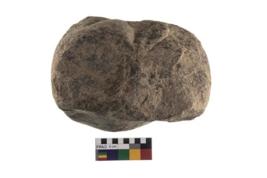 | Description / विवरण | A Hammer stone roughly rounded in shape with battered surfaced and truncated end to hold the object. |