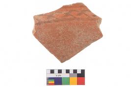 | Description / विवरण | Specimen of black on red ware with black decorative Joint cross pattern geometric painting. |