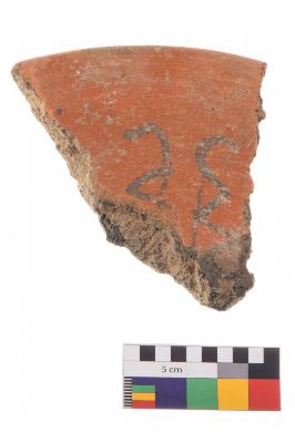 | Description / विवरण | Specimen of black on red ware with black decorative Parallel wavy lines geometric painting. |