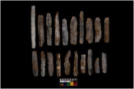 | Description / विवरण | There are 20 microlithic blades of the material Chalcedony. All the blades are in intact condition. Some of the blades are re-touched. |