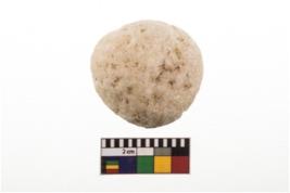 | Description / विवरण | A partially broken speciemen of stone sling ball, small in size,roughlly rounded in shaped and with smooth surface. |