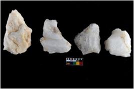 | Description / विवरण | There are n-4 of intact utilized flake cores made up of Quartz. Some of them have bulge of percussion and some are flat flakes. |