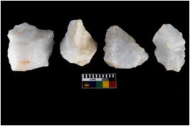 | Description / विवरण | There are n-4 of intact utilized flake cores made up of Quartz. Some of them have bulge of percussion and some are flat flakes. |