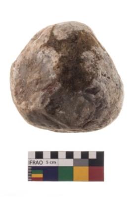 | Description / विवरण | The object is Hammerstone of material Quartz. It is oval in shape with battered periphery. |