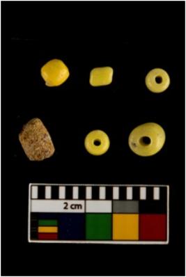 | Description / विवरण | There are n-6 of beads. All are short cylindrical yellow beads with two concave ends made up of Glass. All are in intact condition. |