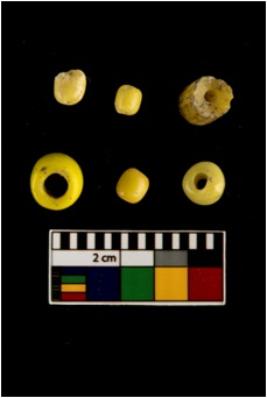 | Description / विवरण | There are n-6 of beads. All are short cylindrical yellow beads with two concave ends made up of Glass. All are in intact condition. |