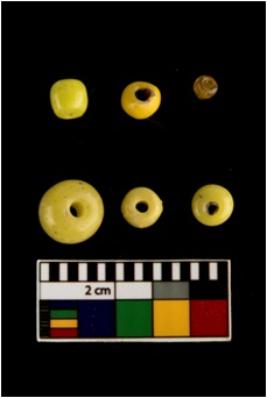 | Description / विवरण | There are n-6 of beads. All are short cylindrical yellow beads with two concave ends made up of Glass. All are in intact condition. |