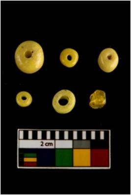 | Description / विवरण | There are n-6 of beads. Out of them 5 are short cylindrical yellow beads with two concave ends and 1 is short truncated biconical yellow bead made up of Glass. All are in intact condition. |