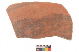 | Description / विवरण | Specimen of black on red ware with black decorative Intersecting curves geometric painting. |