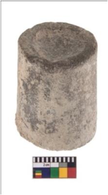 | Description / विवरण | A complete specimen of terracotta weight with cylindrical shape. The object s height is less than width of its base. It is having a depression at the apex. It is having rough surface, fine fabric and greyish in colour. It is well fired. |