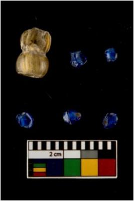 | Description / विवरण | There are n-6 of beads. Out of them 5 are standard truncated biconical blue beads and 1 is short barrel blue bead made up of Glass. 5 beads are in intact condition and 1 is partially broken. |