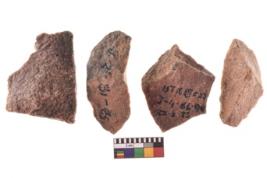 | Description / विवरण | Four worked utilised flakes. Many a times tapering and pointed at one end. |