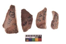 | Description / विवरण | Four worked utilised flakes. Many a times tapering and pointed at one end. |