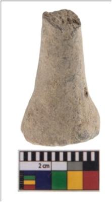 | Description / विवरण | A partially broken specimen of terracotta conical object with tapering sides. Its apex is broken. The object s height is greater than width of its base. It is probably used as a potters tool. It is having smooth surface, fine fabric and reddish in colour. It is well fired. |