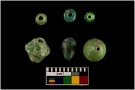 | Description / विवरण | There are n-6 of beads. Out of them 3 are short barrel, 1 is standard biconical and 2 are truncated convex biconical green beads made up of Glass. All of them are in intact condition. |