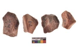 | Description / विवरण | Four worked utilised flakes. Many a times tapering and pointed at one end. |