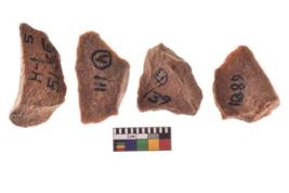 | Description / विवरण | Four worked utilised flakes. Many a times tapering and pointed at one end. |