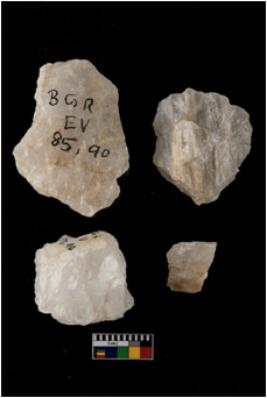 | Description / विवरण | There are n-4 of cores. All are made up of Quartz. All of them are intact fully fluted cores without any trace of crested ridge flakes. |
