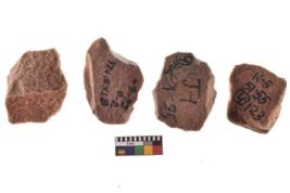 | Description / विवरण | Four worked utilised flakes. Many a times tapering and pointed at one end. |
