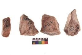 | Description / विवरण | Four worked utilised flakes. Many a times tapering and pointed at one end. |