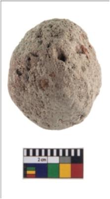 | Description / विवरण | A complete specimen of terracotta birdshot with a roughly circular shape. It is having coarse texture and rough surface, medium fabric and reddish in colour. It is ill fired. |