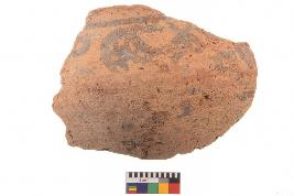 | Description / विवरण | Specimen of black on red ware with black decorative Animal motifs nature painting. |