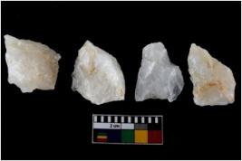 | Description / विवरण | There are n-4 of intact utilized flake cores made up of Quartz. Some of them have bulge of percussion and some are flat flakes. |