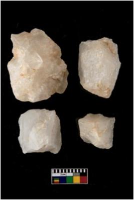 | Description / विवरण | There are n-4 of cores. All are made up of Quartz. All of them are intact fully fluted cores without any trace of crested ridge flakes. |