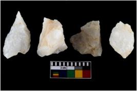 | Description / विवरण | There are n-4 of intact utilized flake cores made up of Quartz. Some of them have bulge of percussion and some are flat flakes. |