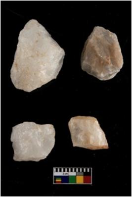 | Description / विवरण | There are n-4 of cores. All are made up of Quartz. All of them are intact fully fluted cores without any trace of crested ridge flakes. |