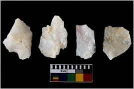 | Description / विवरण | There are n-4 of intact utilized flake cores made up of Quartz. Some of them have bulge of percussion and some are flat flakes. |