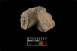 | Description / विवरण | A broken figurine with headgear like feature on top and pinched at the center , Red in colour. |