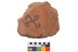 | Description / विवरण | Specimen of black on red ware with black decorative Cross with curved edges geometric painting. |