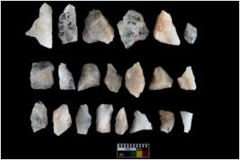 | Description / विवरण | Specimen of a fluted cores having several broad fluted marks indicating the detached blades from it. |