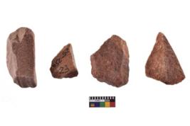 | Description / विवरण | A specimen of flake tool with prominent flaking marks. It made up of a short flakes with sides trimmed. It is rectangular in shaped. |