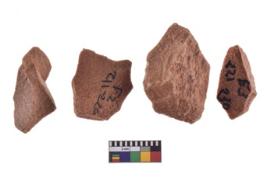 | Description / विवरण | A specimen of flake tool with prominent flaking marks. It made up of a short flakes with sides trimmed. It is rectangular in shaped. |