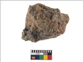 | Description / विवरण | A partially broken specimen of an iron slag. It is having a matt and rough surface with uneven shapes. It is black-brownish in colour and heavily corroded. |
