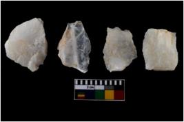 | Description / विवरण | There are n-4 of intact utilized flake cores made up of Quartz. Some of them have bulge of percussion and some are flat flakes. |
