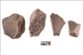 | Description / विवरण | Four worked utilised flakes with sharp edges. |