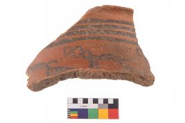 | Description / विवरण | Specimen of black on red ware with black decorative Animal motifs nature painting. |