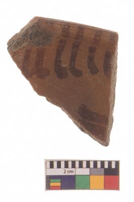 | Description / विवरण | Specimen of red ware with decorative red pigment. |