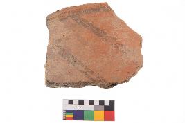 | Description / विवरण | Specimen of black on red ware with black decorative Parallel cross lines geometric painting. |